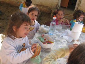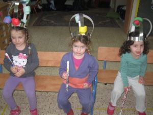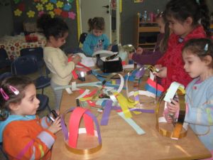 והכנו כתרים באמצעות שדכנים ומגילות שגילגלנו בעצמנו -