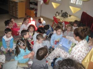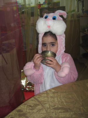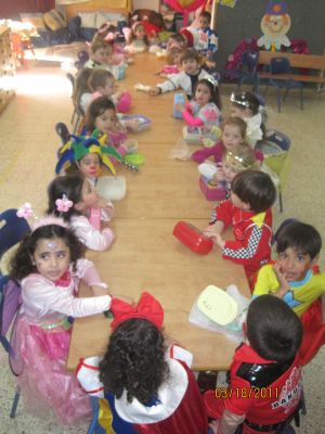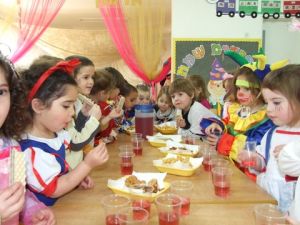 לאחר המופע חזרנו לגן וערכנו משתה גדול בדיוק כמו בסיפור המגילה והגרלנו משלוחי מנות -