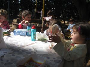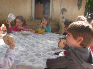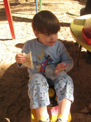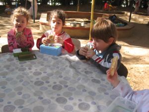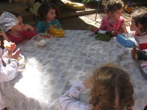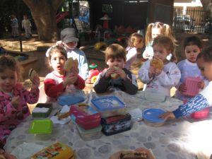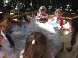 ובגלל שהכל היה הפוך, אז זמן היציאה לחצר שונה ויצאנו מוקדם בבוקר ואת ארוחת הבוקר גם אכלנו בחוץ -