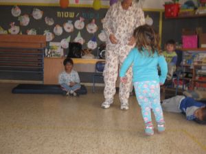 וכחלק מכל התחפושות ,החלטנו להגיע לגן עם פיג'מות ליום שכולו הפוך ומבולבל -