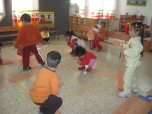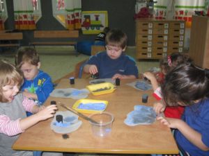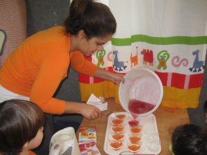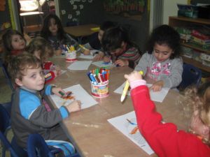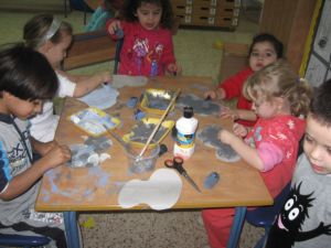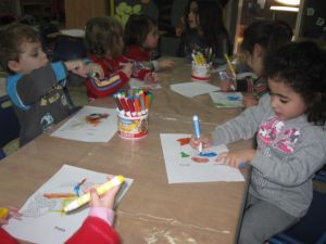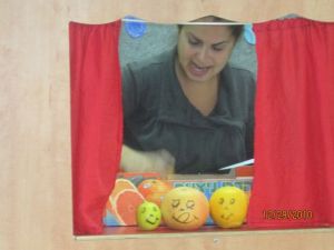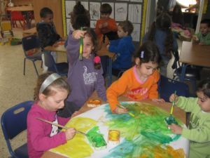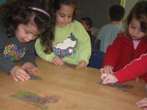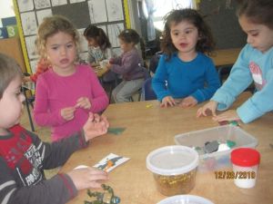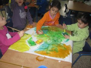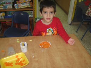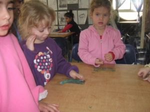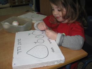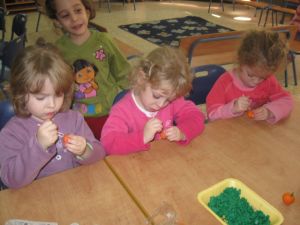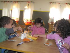 צביעה בטושים ונעיצת נעצי פלסטיק - (בנושא פרות הדר כמובן)