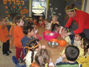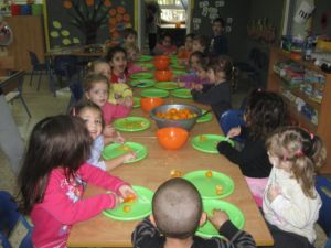 הפרדס - חותכים בזהירות רבה תפוזונים ואח"כ נכין מהם ריבה.